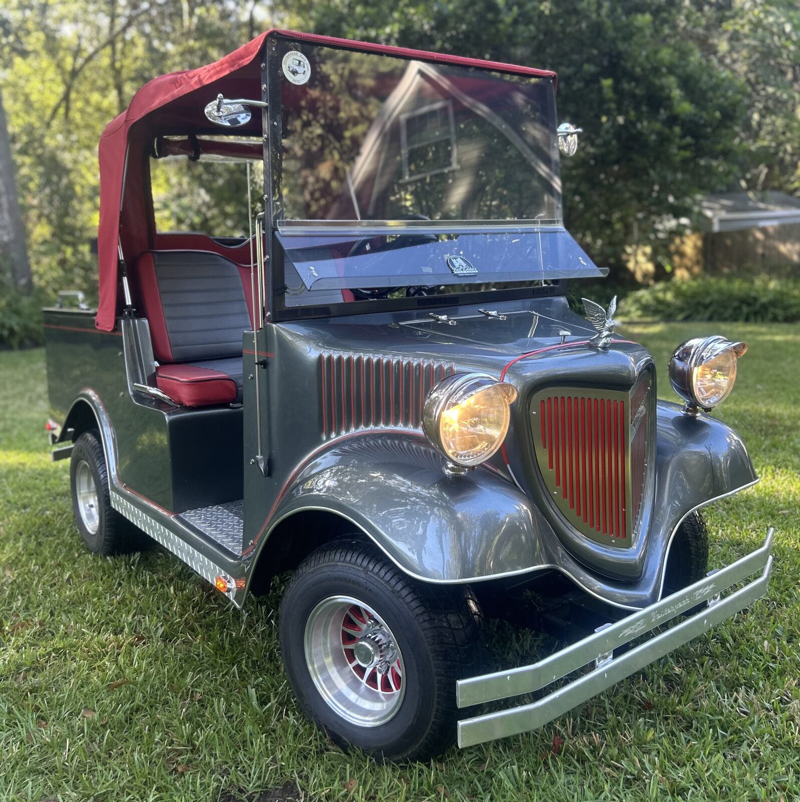 It has some upgrades such as a full light kit (Headlights, tail lights, brake lights, turn signals, horn) all in working order. Has nice UPGRADED seat with padded arm rests and seatbelts and a matching rain enclosure. It has very nice wheels & tires, gas gauge, overhead storage tray, tinted windshield and floor mat!