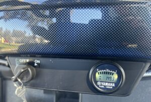 It is is LOADED starting with UPGRADED seating with arm rests and seatbelts. Has LED light kit (LED Headlights, LED Tail lights, brake lights, turn signals, horn) all in working order. Also has illuminated YAMAHA logo up front & turn signal indicators in the cart. Also comes equipped with CUSTOM carbon fiber dashboard with lock boxes, in-dash gas gauge with speedometer/odometer (only 2,650 miles), 2 overhead trays, cooler, sand bottle, vented windshield, floor mat, mirrors etc!