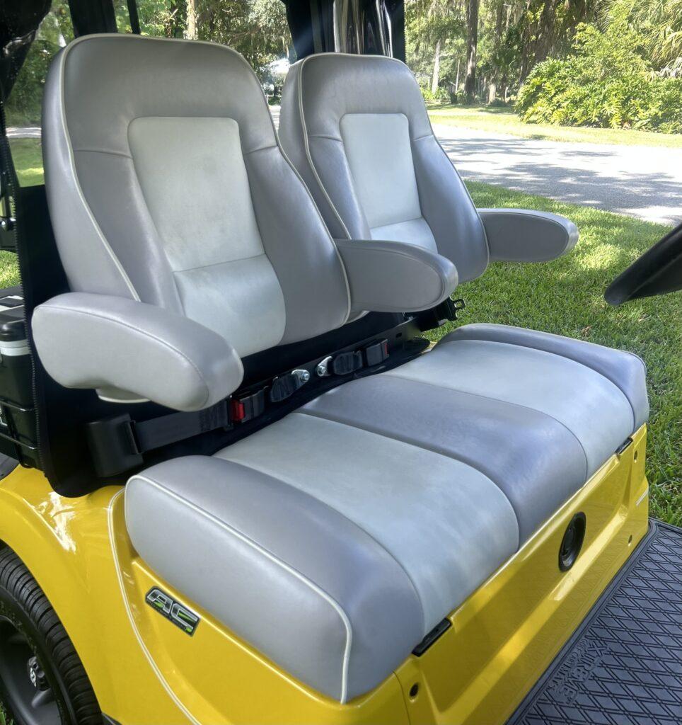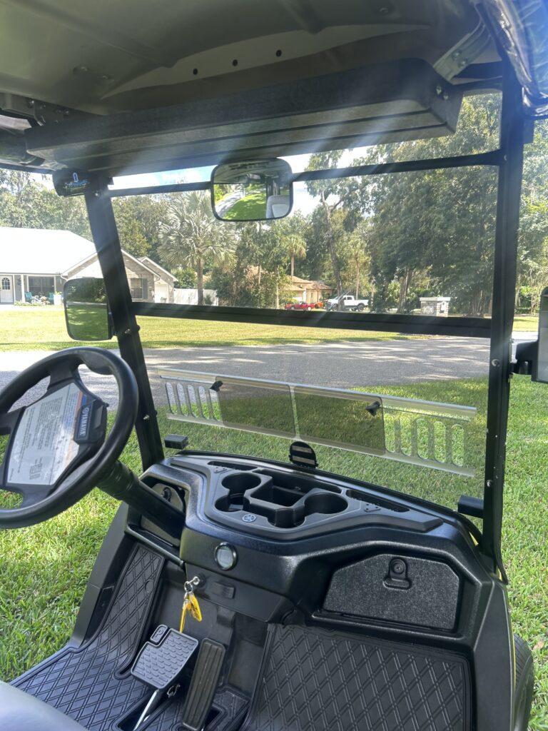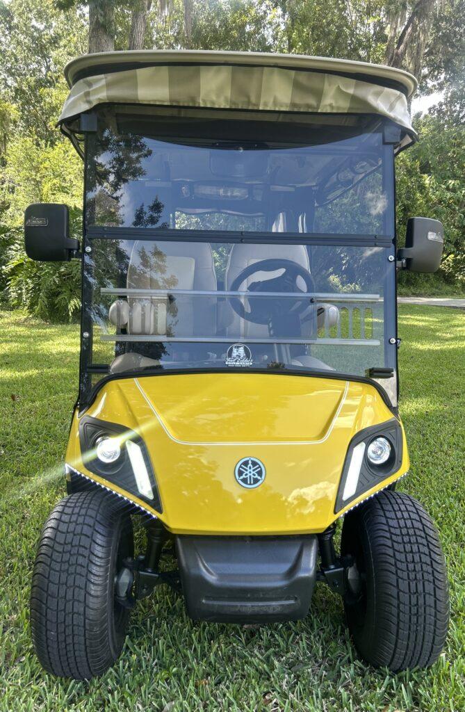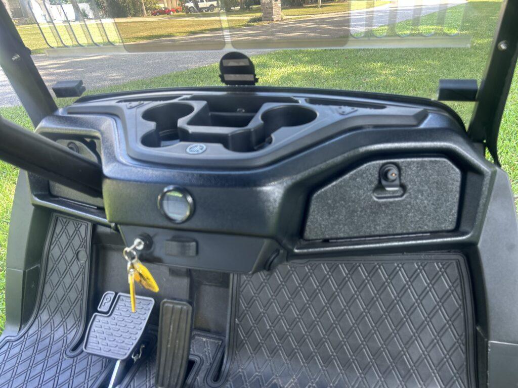 This cart is FULLY LOADED with full LED light kit, with LED strips above the wheel that flash with blinkers. Also has upgraded 3rd brake light and turn signal indicators in the mirrors. Has UPGRADED high back seats with 3 arm rests and seatbelts, locking dashboard with battery gauge, speedometer, overhead tray, vented windshield, Xtreme floor mat, cooler, sand bottle and more!