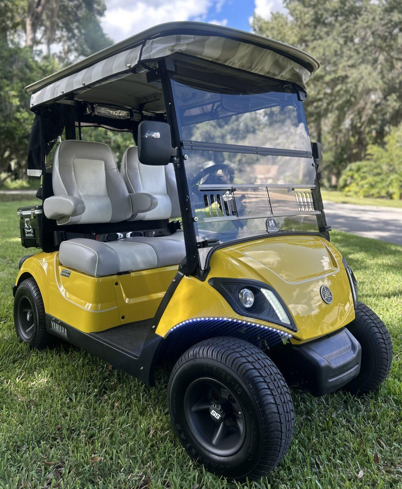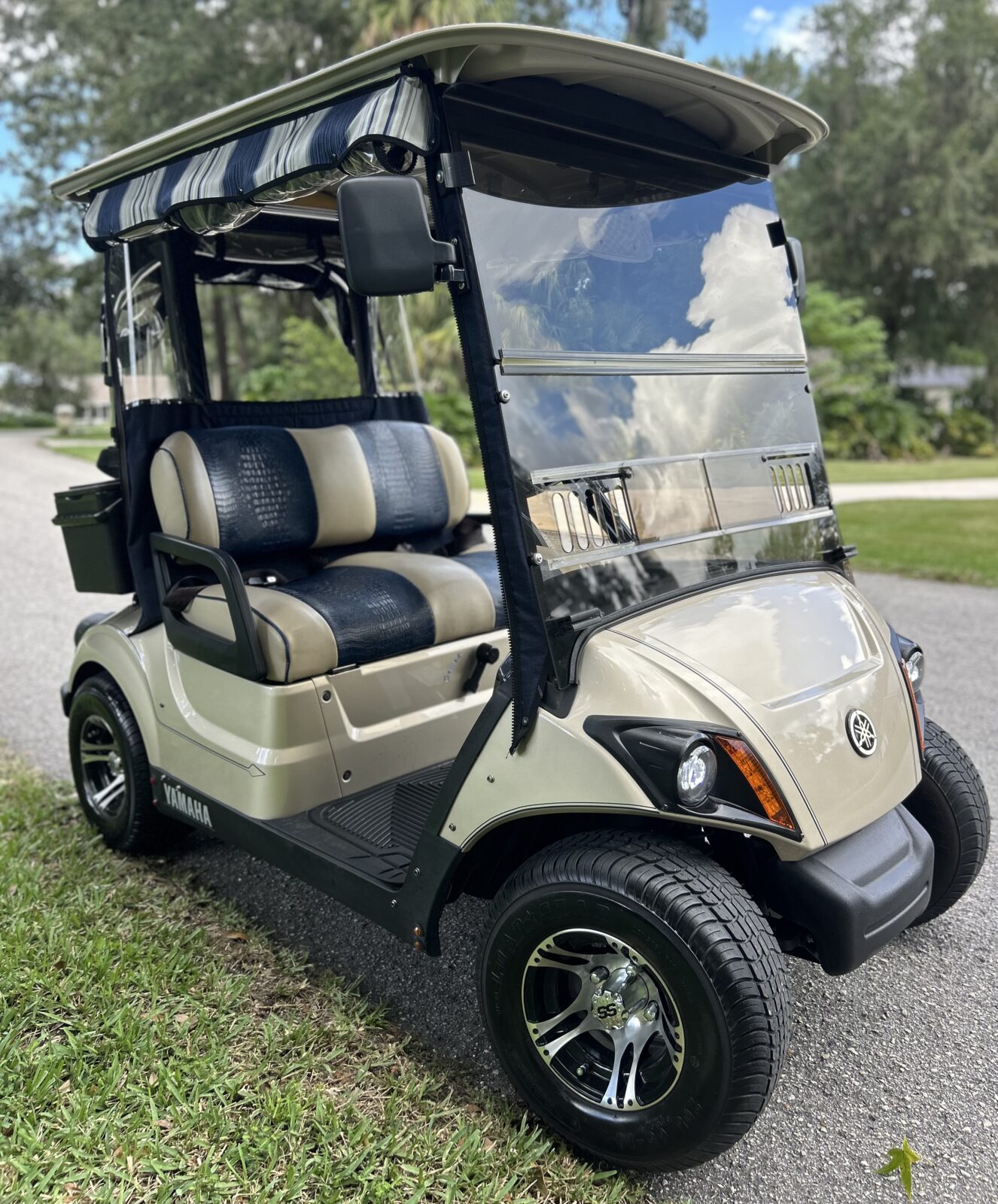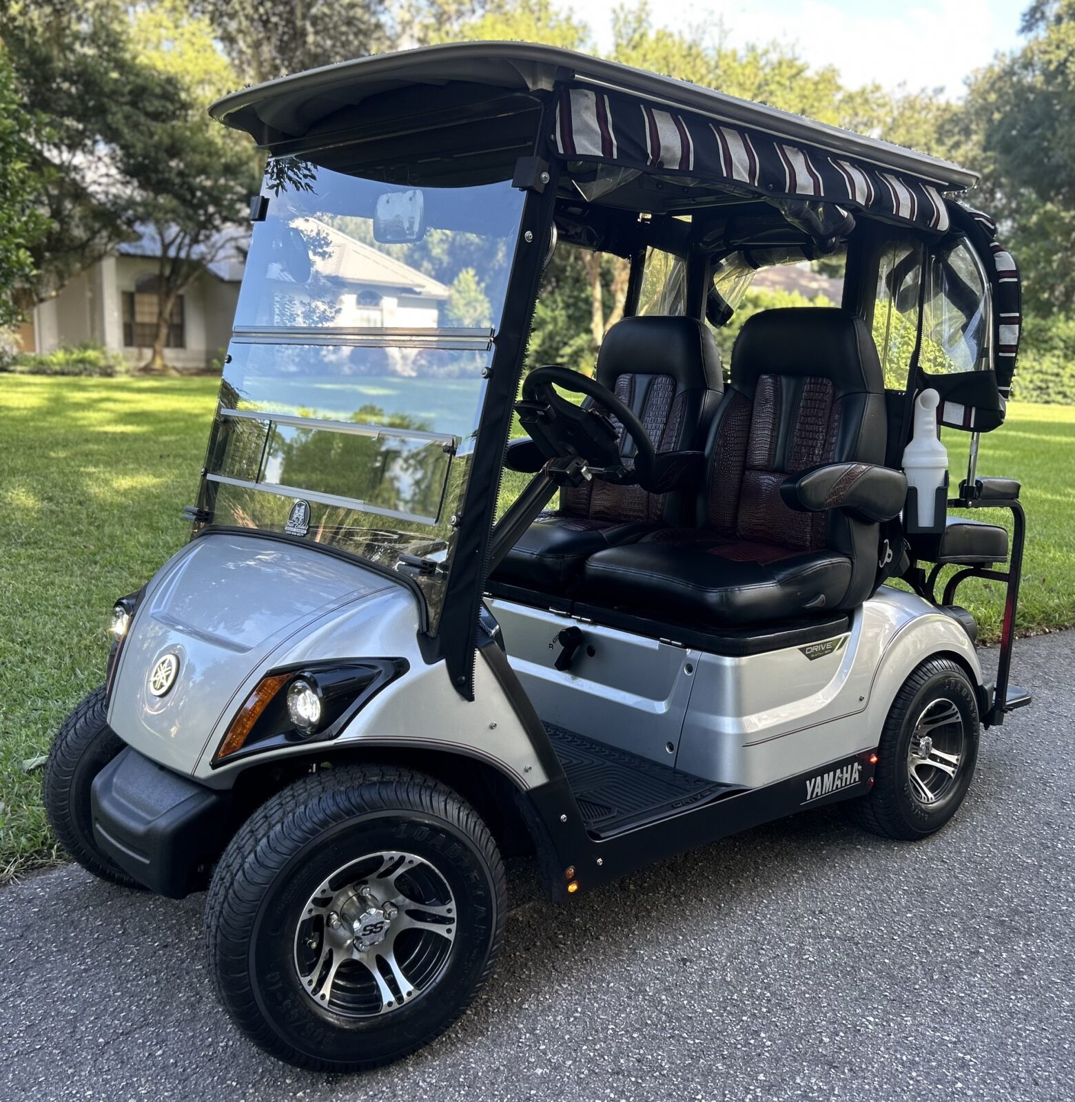 We have here an absolutely beautiful, 2021 Yamaha PowerTech LITHIUM POWERED (160 AH) golf cart for sale! This cart was fully refurbished by Village Discount Golf Cars and sold 5/2024. It gets 60 mile range on a single charge; these carts sell for $15-16K + tax new! SAVE THOUSANDS!