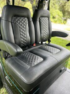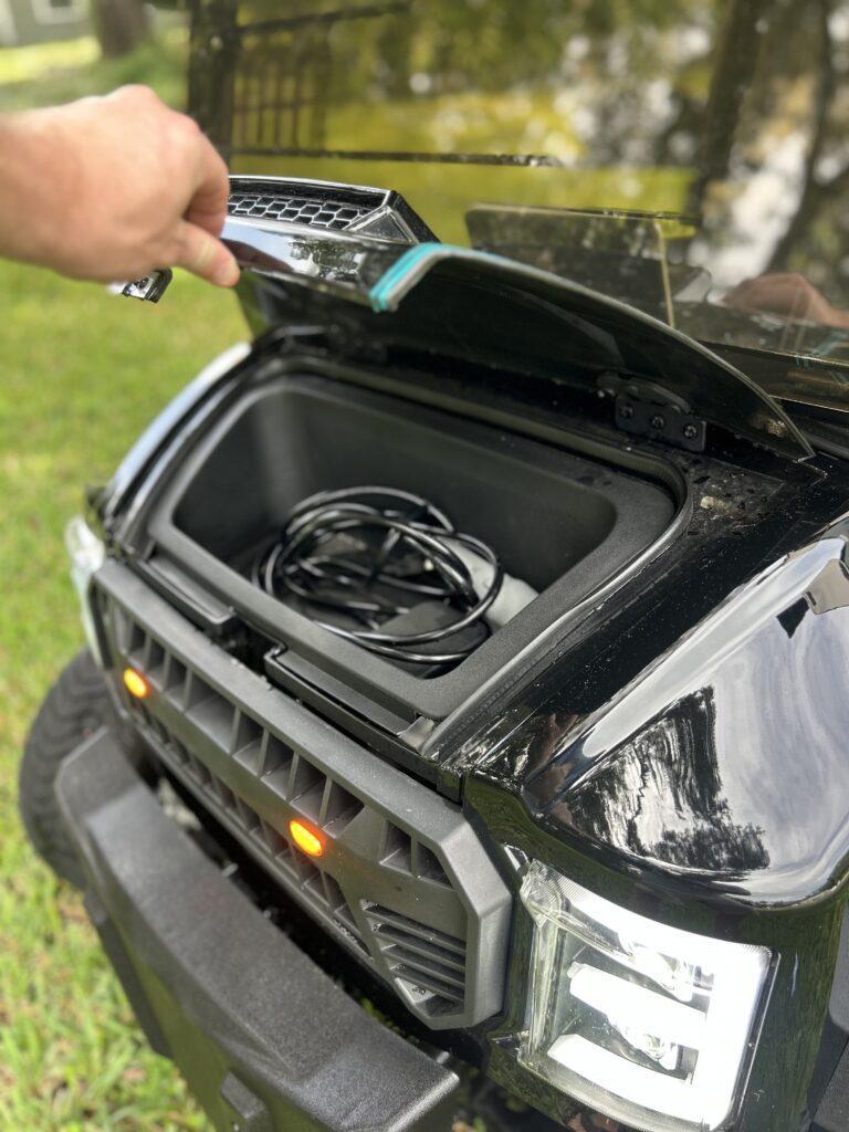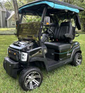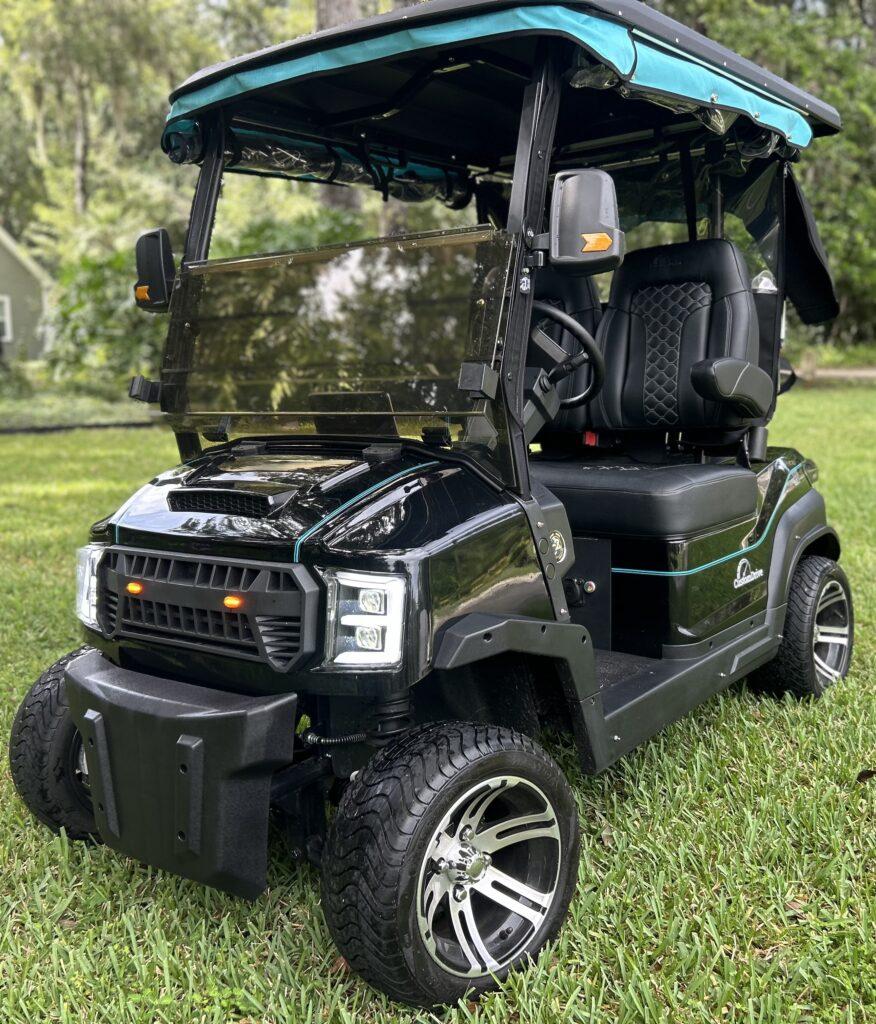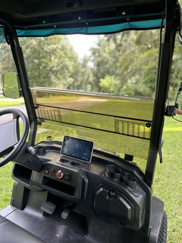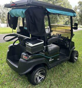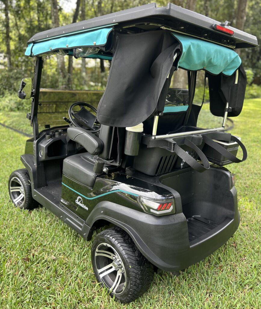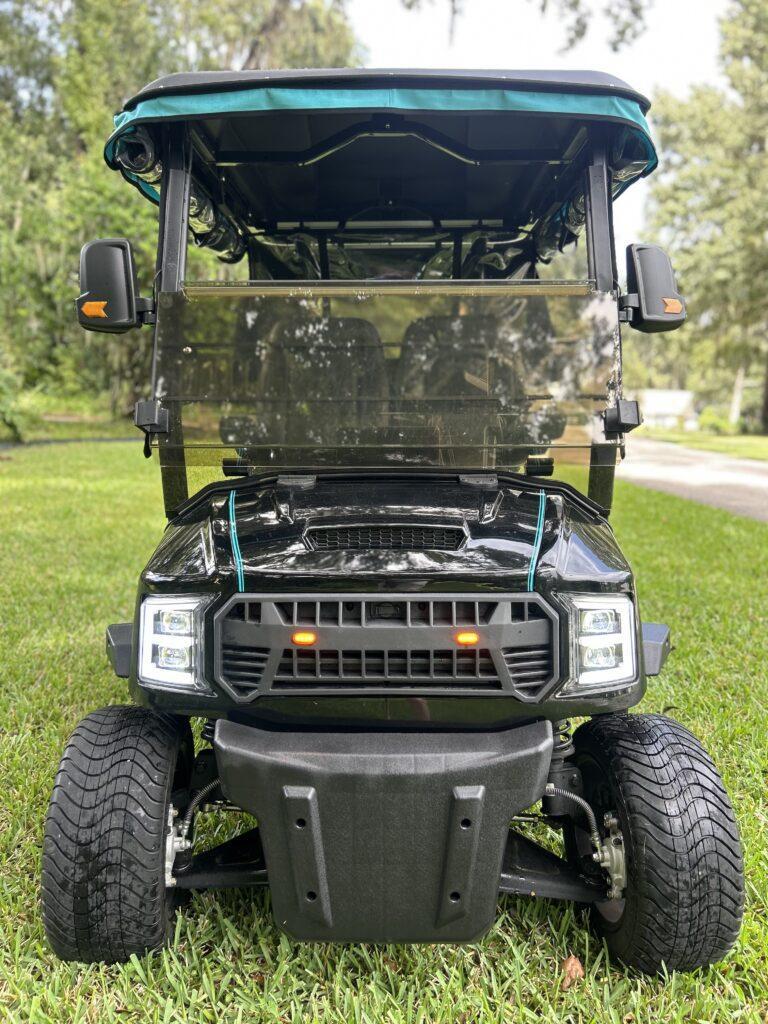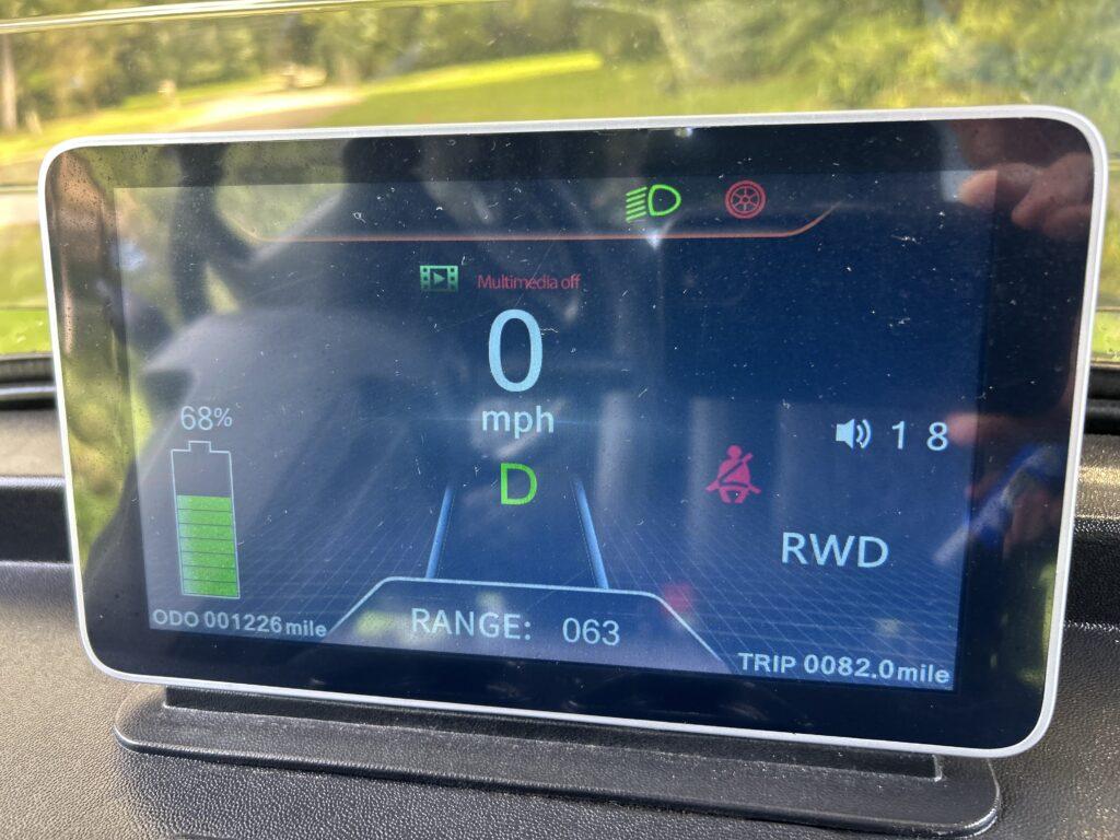 It is absolutely LOADED with many options such as full LED light kit with SELF-CANCELLING turn signals and LED turn signal indicators in the mirrors. Has UPGRADED seats with arm rests and seatbelts, push button start, hi/low speed option, radio/Bluetooth speakers 🔊, locking dashboard, USB outlets to charge phone, frunk (front storage), LCD screen that functions as backup camera, digital speedometer, battery meter and more! Also has painted roof with 3rd brake light and full enclosure w/EZ snaps. Wheels and tires in great shape. Comes with charging cord and onboard charger.